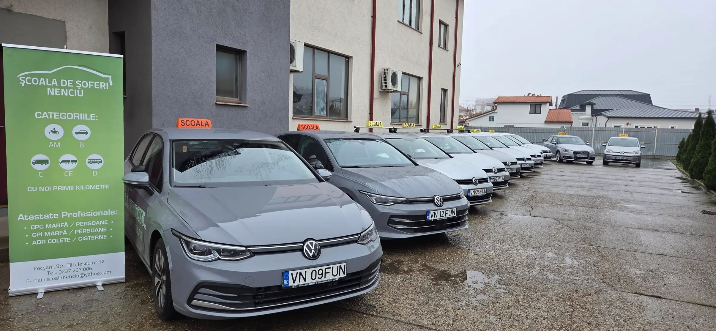 Școala de Șoferi Nenciu din Focșani oferă cursuri complete pentru toate categoriile auto: B, C, CE, D, AM, precum și atestare profesională rutieră. Suntem una dintre cele mai apreciate școli auto din județul Vrancea, datorită seriozității, instructorilor experimentați și promovabilității ridicate.